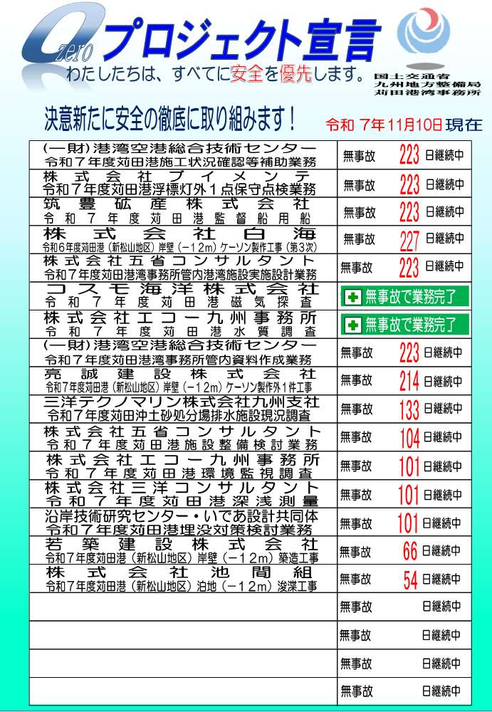 苅田港湾事務所は、平成29年6月、すべての工事・業務に無事故・無災害を更新、継続していくことを宣言しました