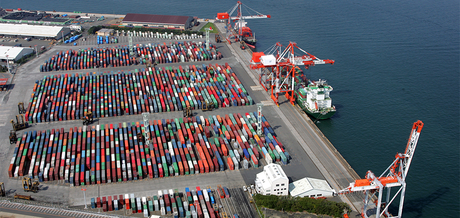太刀浦地区は、西日本有数の定期コンテナ航路とコンテナ貨物取扱量を誇る「太刀浦コンテナターミナル」や物流施設が多く立地している産業エリアです。コンテナターミナルは、第1ターミナルと第2ターミナルに分かれており、アジア近郊からコンテナ船が寄港しています。IT技術を導入し、正確・迅速・効率的なコンテナオペレーションを行っています。また、フルコンテナ貨物だけでなく混載貨物にも専業フォワーダーによるきめの細かいサービスを提供しています。敷地内には、展望室があり、コンテナ荷役の様子を眺めることができます。港湾事業者の視察や小学生の社会科見学などに利用されています。