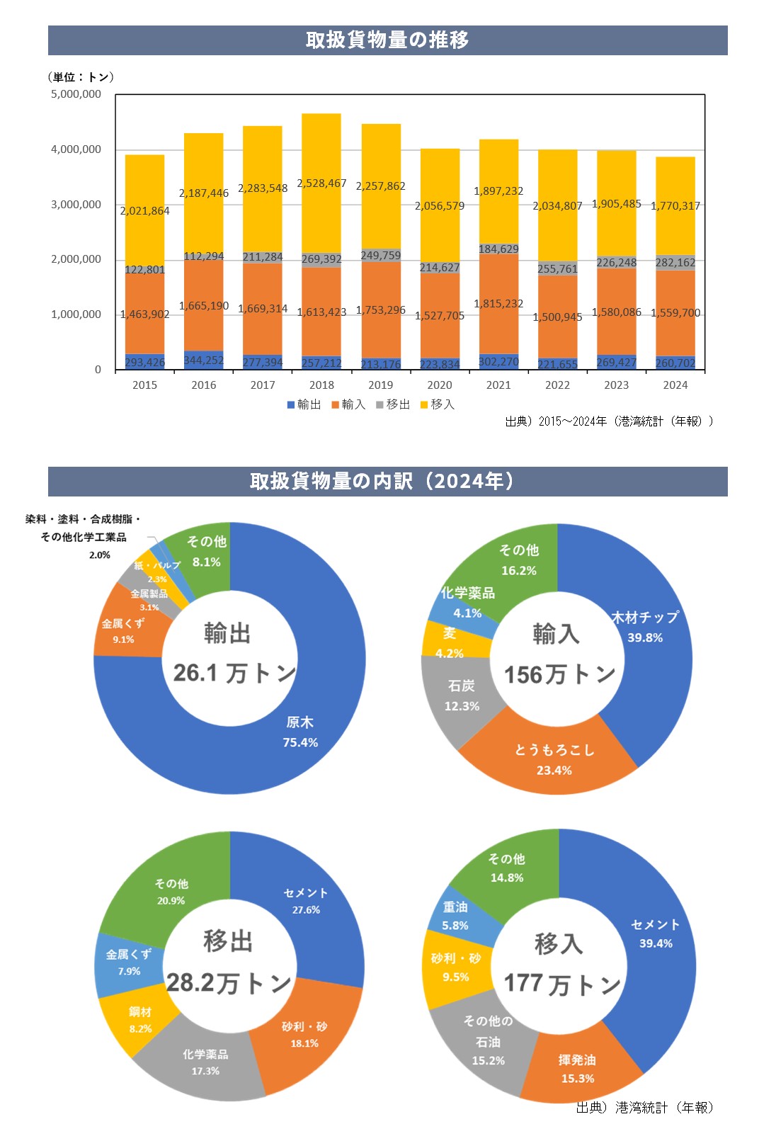 八代港全体貨物量の推移